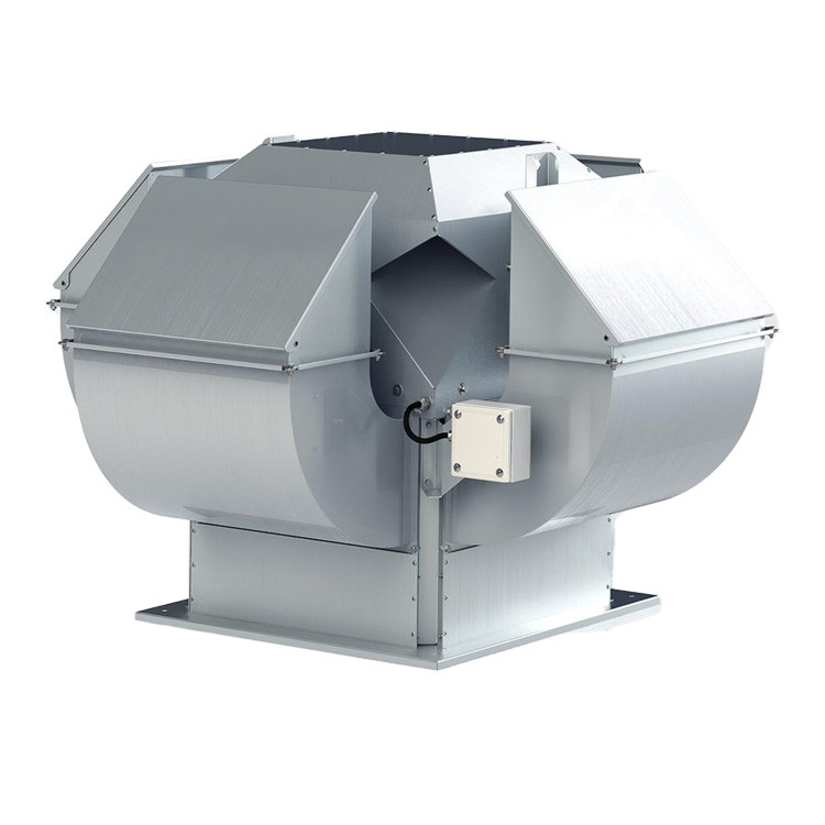 Крышные радиальные вентиляторы осуществляют выброс воздуха вверх (ВКРФ) или в стороны (ВКРС). Электродвигатели вентиляторов защищены от попадания дождя и снега защитным кожухом.