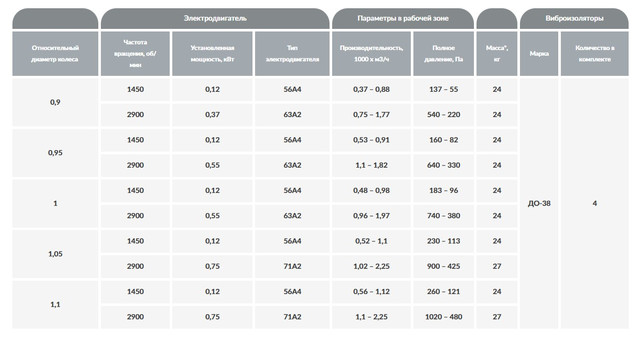 Воздушный поток генерируется за счет вращения рабочего колеса, насчитывающего 12-ть лопаток, загнутых в обратном направлении вращения.