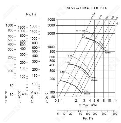 Вентилятор радиальный низкого давления ВР-86-77-4,0-0,37 кВт 1500 об/мин.