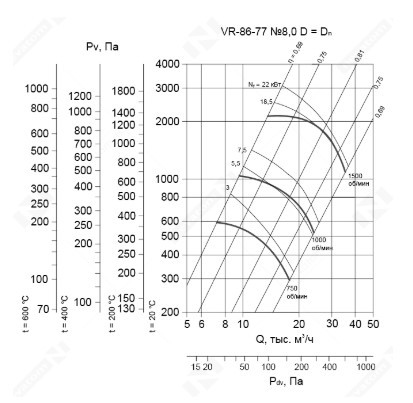 Вентилятор радиальный низкого давления ВР-86-77-8,0- 22 кВт 1500 об/мин.