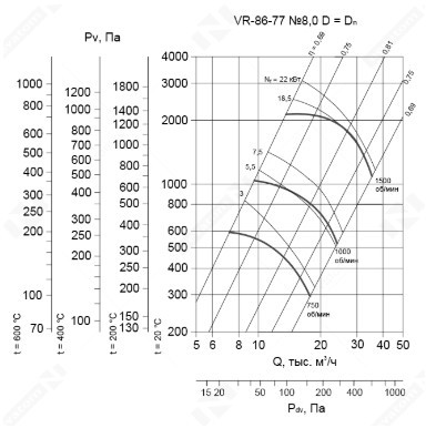 Вентилятор радиальный низкого давления ВР-86-77-8,0- 5,5 кВт 1000 об/мин.