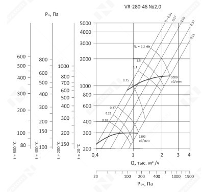 Радиальные вентиляторы VR-280-46 рассчитаны на работу с малозапыленным воздухом и газовоздушными смесями. Предельно допустимая концентрация взвешенной пыли в рабочей среде составляет 100 мг/м3. Для вентиляторов стандартного исполнения наибольшая температура рабочего воздуха или газовоздушной смеси составляет +80С, для оборудования в теплостойком исполнении верхний температурный порог равен +120С. В рабочей среде не допускается наличие взрывоопасных веществ, а также липких или волокнистых материалов.