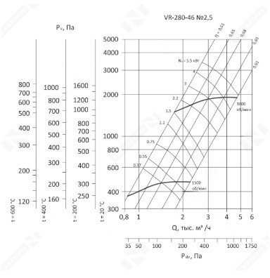 Радиальные вентиляторы VR-280-46 рассчитаны на работу с малозапыленным воздухом и газовоздушными смесями. Предельно допустимая концентрация взвешенной пыли в рабочей среде составляет 100 мг/м3. Для вентиляторов стандартного исполнения наибольшая температура рабочего воздуха или газовоздушной смеси составляет +80С, для оборудования в теплостойком исполнении верхний температурный порог равен +120С. В рабочей среде не допускается наличие взрывоопасных веществ, а также липких или волокнистых материалов.