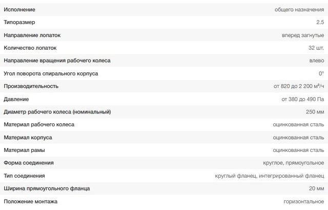 Конструкция вентиляторной установки – моноблочная. В качестве опоры используется рама, посредством которой вентилятор VR-280-46 крепится к крыше или стенам здания. На раме установлен металлический кожух по типу «улитка». Всасывание рабочей среды происходит через круглый патрубок вдоль оси вращения рабочего колеса, а его выброс – через прямоугольный патрубок под прямым углом. На фланцах обоих патрубков предусмотрены отверстия под крепление к воздуховодам.