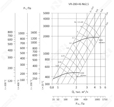 Радиальные вентиляторы VR-280-46 рассчитаны на работу с малозапыленным воздухом и газовоздушными смесями. Предельно допустимая концентрация взвешенной пыли в рабочей среде составляет 100 мг/м3. Для вентиляторов стандартного исполнения наибольшая температура рабочего воздуха или газовоздушной смеси составляет +80С, для оборудования в теплостойком исполнении верхний температурный порог равен +120С. В рабочей среде не допускается наличие взрывоопасных веществ, а также липких или волокнистых материалов.