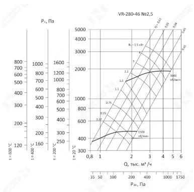 Радиальные вентиляторы VR-280-46 рассчитаны на работу с малозапыленным воздухом и газовоздушными смесями. Предельно допустимая концентрация взвешенной пыли в рабочей среде составляет 100 мг/м3. Для вентиляторов стандартного исполнения наибольшая температура рабочего воздуха или газовоздушной смеси составляет +80С, для оборудования в теплостойком исполнении верхний температурный порог равен +120С. В рабочей среде не допускается наличие взрывоопасных веществ, а также липких или волокнистых материалов.