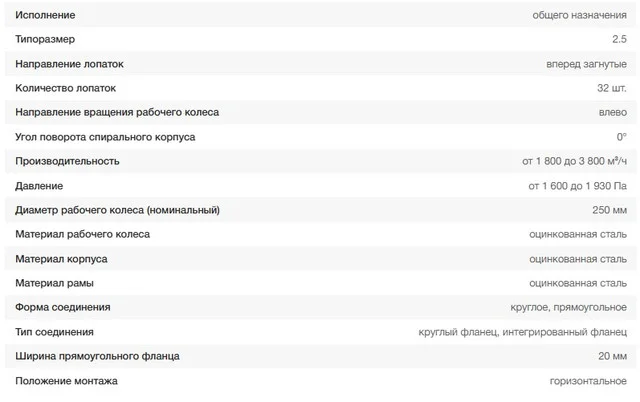 Конструкция вентиляторной установки – моноблочная. В качестве опоры используется рама, посредством которой вентилятор VR-280-46 крепится к крыше или стенам здания. На раме установлен металлический кожух по типу «улитка». Всасывание рабочей среды происходит через круглый патрубок вдоль оси вращения рабочего колеса, а его выброс – через прямоугольный патрубок под прямым углом. На фланцах обоих патрубков предусмотрены отверстия под крепление к воздуховодам.