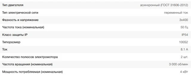 Характеристики двигателя