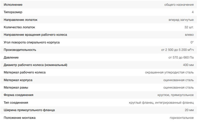 Конструкция вентиляторной установки – моноблочная. В качестве опоры используется рама, посредством которой вентилятор VR-280-46 крепится к крыше или стенам здания. На раме установлен металлический кожух по типу «улитка». Всасывание рабочей среды происходит через круглый патрубок вдоль оси вращения рабочего колеса, а его выброс – через прямоугольный патрубок под прямым углом. На фланцах обоих патрубков предусмотрены отверстия под крепление к воздуховодам.