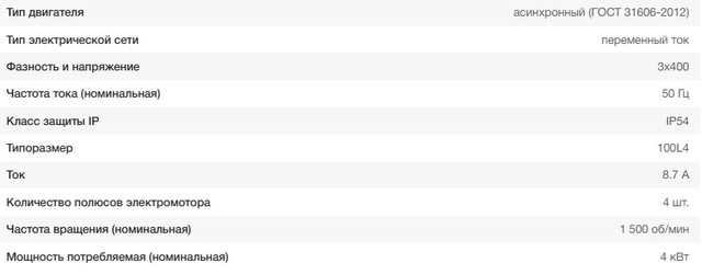 Характеристики двигателя