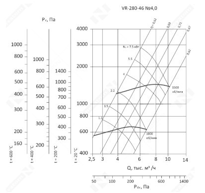 Радиальные вентиляторы VR-280-46 рассчитаны на работу с малозапыленным воздухом и газовоздушными смесями. Предельно допустимая концентрация взвешенной пыли в рабочей среде составляет 100 мг/м3. Для вентиляторов стандартного исполнения наибольшая температура рабочего воздуха или газовоздушной смеси составляет +80С, для оборудования в теплостойком исполнении верхний температурный порог равен +120С. В рабочей среде не допускается наличие взрывоопасных веществ, а также липких или волокнистых материалов.