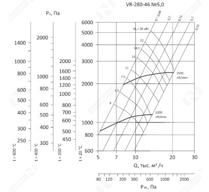 Радиальные вентиляторы VR-280-46 рассчитаны на работу с малозапыленным воздухом и газовоздушными смесями. Предельно допустимая концентрация взвешенной пыли в рабочей среде составляет 100 мг/м3. Для вентиляторов стандартного исполнения наибольшая температура рабочего воздуха или газовоздушной смеси составляет +80С, для оборудования в теплостойком исполнении верхний температурный порог равен +120С. В рабочей среде не допускается наличие взрывоопасных веществ, а также липких или волокнистых материалов.