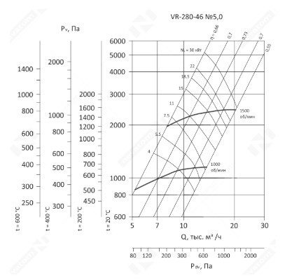 Радиальные вентиляторы VR-280-46 рассчитаны на работу с малозапыленным воздухом и газовоздушными смесями. Предельно допустимая концентрация взвешенной пыли в рабочей среде составляет 100 мг/м3. Для вентиляторов стандартного исполнения наибольшая температура рабочего воздуха или газовоздушной смеси составляет +80С, для оборудования в теплостойком исполнении верхний температурный порог равен +120С. В рабочей среде не допускается наличие взрывоопасных веществ, а также липких или волокнистых материалов.