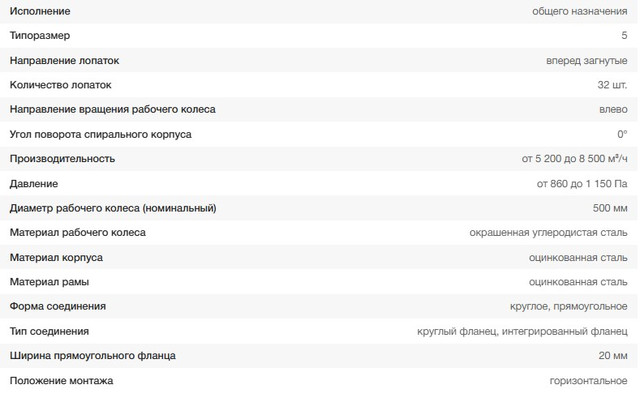 Конструкция вентиляторной установки – моноблочная. В качестве опоры используется рама, посредством которой вентилятор VR-280-46 крепится к крыше или стенам здания. На раме установлен металлический кожух по типу «улитка». Всасывание рабочей среды происходит через круглый патрубок вдоль оси вращения рабочего колеса, а его выброс – через прямоугольный патрубок под прямым углом. На фланцах обоих патрубков предусмотрены отверстия под крепление к воздуховодам.