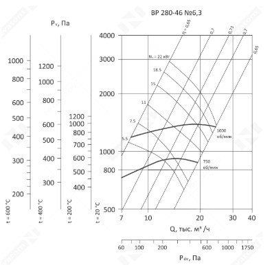 Радиальные вентиляторы VR-280-46 рассчитаны на работу с малозапыленным воздухом и газовоздушными смесями. Предельно допустимая концентрация взвешенной пыли в рабочей среде составляет 100 мг/м3. Для вентиляторов стандартного исполнения наибольшая температура рабочего воздуха или газовоздушной смеси составляет +80С, для оборудования в теплостойком исполнении верхний температурный порог равен +120С. В рабочей среде не допускается наличие взрывоопасных веществ, а также липких или волокнистых материалов.