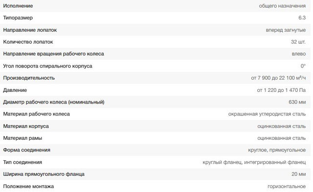 Конструкция вентиляторной установки – моноблочная. В качестве опоры используется рама, посредством которой вентилятор VR-280-46 крепится к крыше или стенам здания. На раме установлен металлический кожух по типу «улитка». Всасывание рабочей среды происходит через круглый патрубок вдоль оси вращения рабочего колеса, а его выброс – через прямоугольный патрубок под прямым углом. На фланцах обоих патрубков предусмотрены отверстия под крепление к воздуховодам.