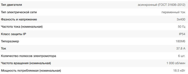 Характеристики двигателя
