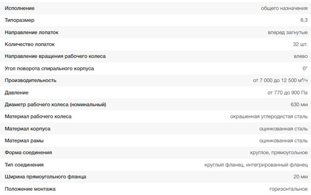 Конструкция вентиляторной установки – моноблочная. В качестве опоры используется рама, посредством которой вентилятор VR-280-46 крепится к крыше или стенам здания. На раме установлен металлический кожух по типу «улитка». Всасывание рабочей среды происходит через круглый патрубок вдоль оси вращения рабочего колеса, а его выброс – через прямоугольный патрубок под прямым углом. На фланцах обоих патрубков предусмотрены отверстия под крепление к воздуховодам.