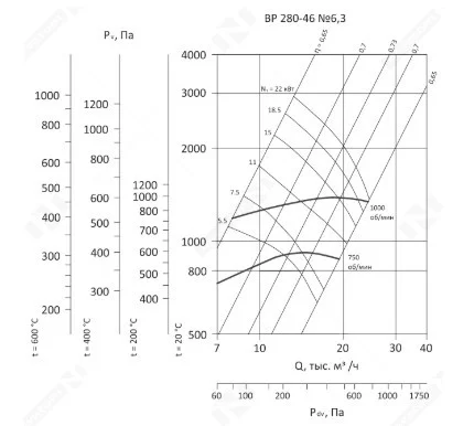 Радиальные вентиляторы VR-280-46 рассчитаны на работу с малозапыленным воздухом и газовоздушными смесями. Предельно допустимая концентрация взвешенной пыли в рабочей среде составляет 100 мг/м3. Для вентиляторов стандартного исполнения наибольшая температура рабочего воздуха или газовоздушной смеси составляет +80С, для оборудования в теплостойком исполнении верхний температурный порог равен +120С. В рабочей среде не допускается наличие взрывоопасных веществ, а также липких или волокнистых материалов.